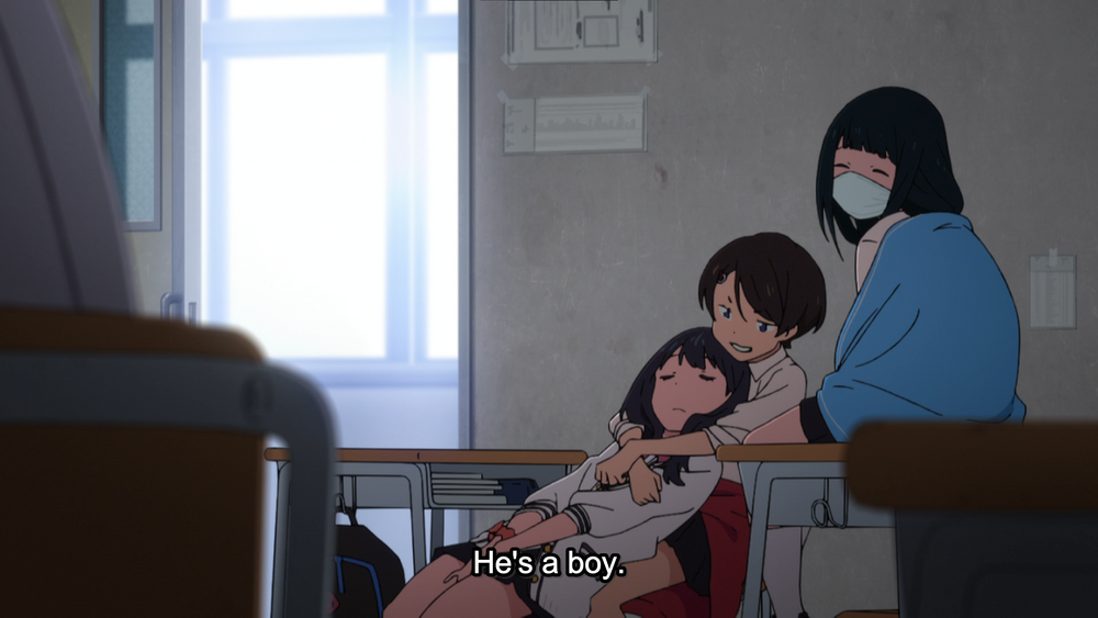 Namiko and Hass tease Rikka a lot whenever she's in the vicinity of boys, from episode one and throughout the show. It's a huge part of their dynamic from the first season. While not particularly mean-spirited, it's important because later on Namiko and Hass are also shown wanting to hang out with guys and invite Rikka