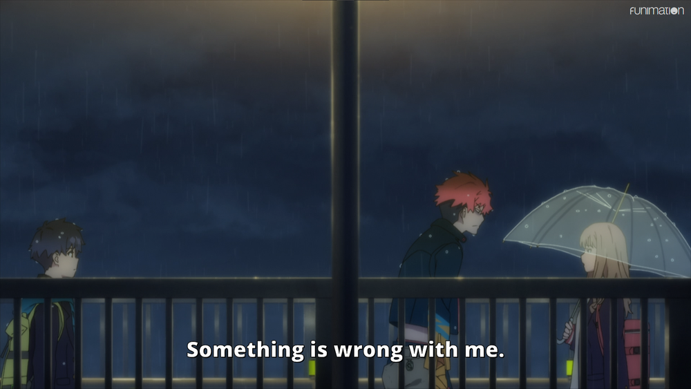 The tower is notable here to me because the city beyond that point is the false city, and the coast of the river/canal it sits upon is as well. They're unfinished locations, places people were never meant to actually go or see in Akane's dream world. But the tower is detailed, with its signs and stairs. A place that Rikka instinctively knew was significant. It was after all at the end of the bus route that Akane and Rikka took to get to school.