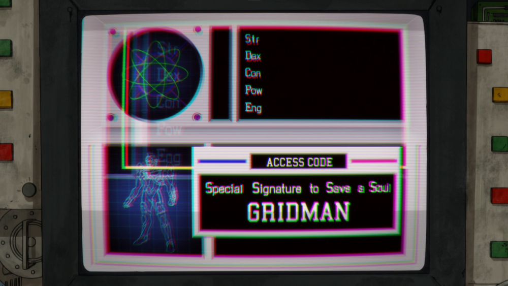 In episode 12 of Gridman when the team all lines up with their Primal Acceptors and combines to become Gridman, Junk displays the letters SSSS, and then expands them out to become: Special Signature to Save a Soul.